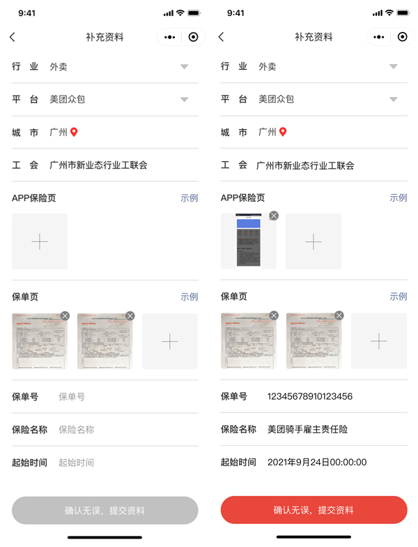 ■广东新就业形态劳动者网上入会系统结合人工智能技术,实现资料自动识别、自动填充、自动选择,避免用户的繁琐输入等操作,极大提升操作友好度。例如美团众包、蜂鸟众包两个平台的网约配送员,在平台提交所服务平台的保单信息,平台即可自动匹配所属行业并推送到所属地市级新业态行业工联会,完成自助入会。如果申请入会的新业态劳动者其所在单位已经成立工会组织,在“粤工惠”平台上进行组织登记,且已经将申请者信息作为会员数据批量导入,则申请的新业态劳动者同样无需审批,自动匹配完成工会会员线上申请程序。