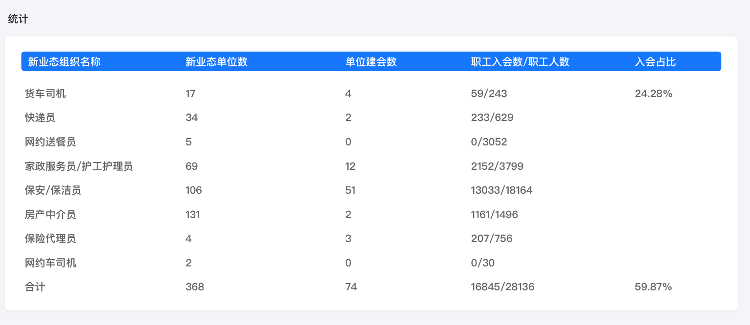 便捷抓取新就业形态劳动者的数量、职业身份、地域分布、行业分布的数据信息,并能进行相应统计分析。