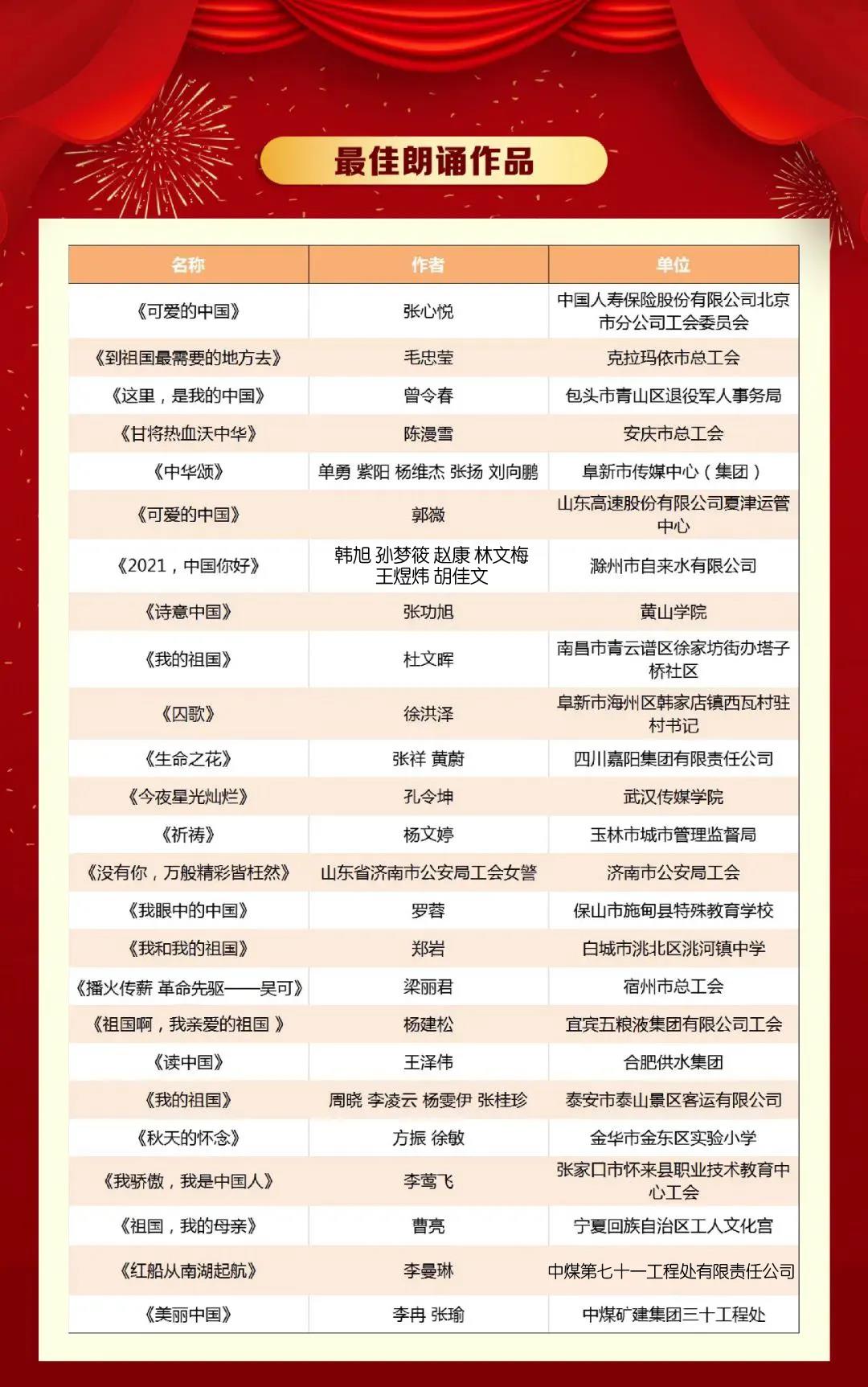 从初秋到深秋,2021“网聚职工正能量 争做中国好网民”主题活动之“网络正能量诵读作品征集”经过发布启示、广泛征集、初步评选、网络投票、终评等阶段,评选结果揭晓~