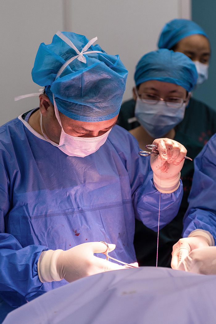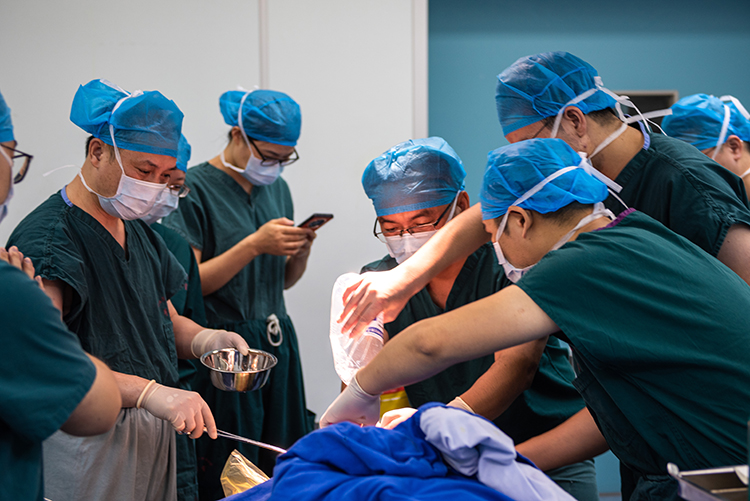 拍摄于一次急诊抢救手术,眼科、耳鼻喉科、口腔科、脑外科医生轮流上阵,共同救治颜面部严重损伤的患者。手术历时五个多小时,在此期间,术者都会保持高度的精神集中,手术结束时汗水浸湿洗手衣,一身的疲倦才会来袭,但是患者的转危为安就是他们最大的心愿,医者仁心!