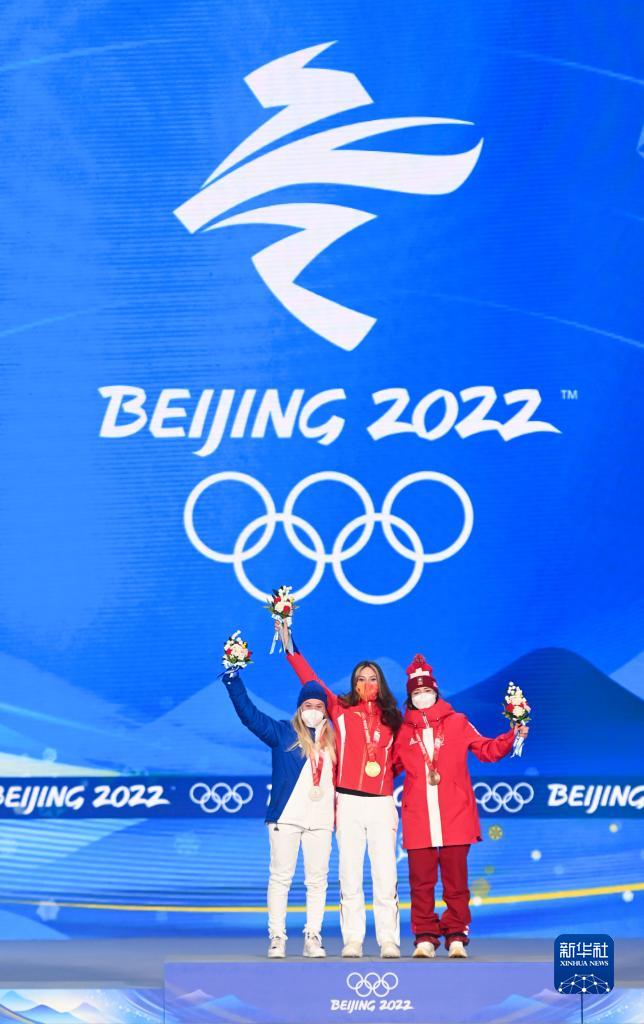 原标题:自由式滑雪女子大跳台奖牌颁发仪式