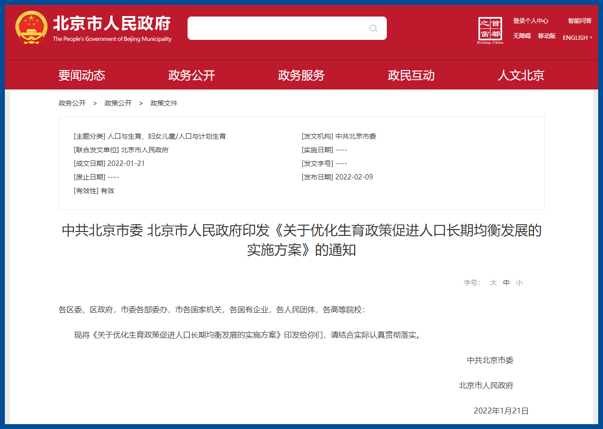 中工网讯 据北京市人民政府网站消息,近日,中共北京市委、北京市人民政府印发《关于优化生育政策促进人口长期均衡发展的实施方案》,全文如下: