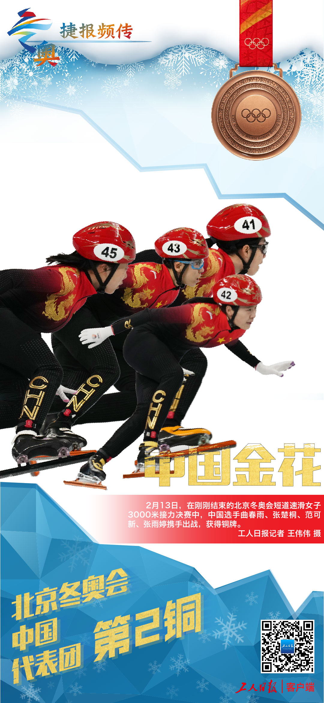 北京冬奥会短道速滑女子3000米接力决赛,中国队获得铜牌。