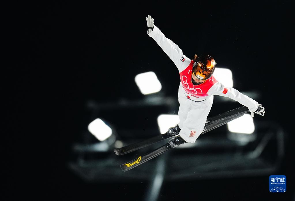 2月14日,中国选手徐梦桃在比赛中。当日,北京2022年冬奥会自由式滑雪女子空中技巧决赛在张家口云顶滑雪公园举行,中国选手徐梦桃夺得冠军。新华社记者 许畅 摄