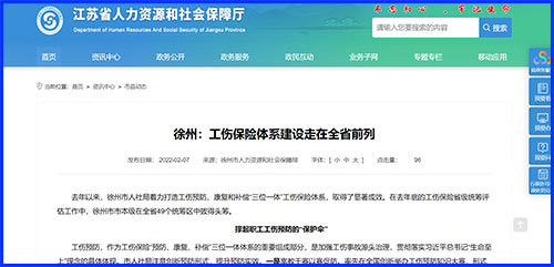 中工网讯 据江苏省人力资源和社会保障厅网站消息,去年以来,徐州市人社局着力打造工伤预防、康复和补偿“三位一体”工伤保险体系,取得了显著成效。在去年底的工伤保险省级统筹评估工作中,徐州市市本级在全省49个统筹区中拔得头筹。