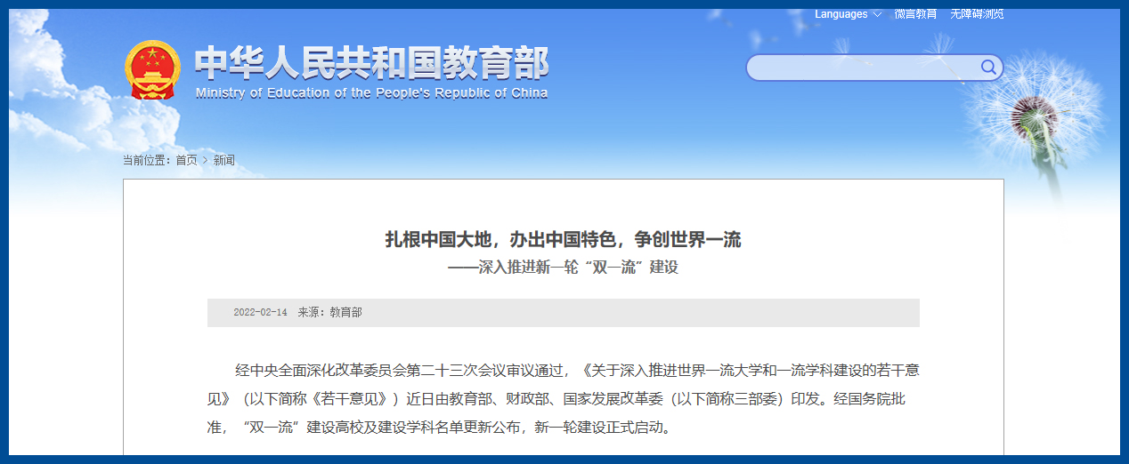 中工网讯 据教育部网站消息,经中央全面深化改革委员会第二十三次会议审议通过,《关于深入推进世界一流大学和一流学科建设的若干意见》(以下简称《若干意见》)近日由教育部、财政部、国家发展改革委(以下简称三部委)印发。经国务院批准,“双一流”建设高校及建设学科名单更新公布,新一轮建设正式启动。