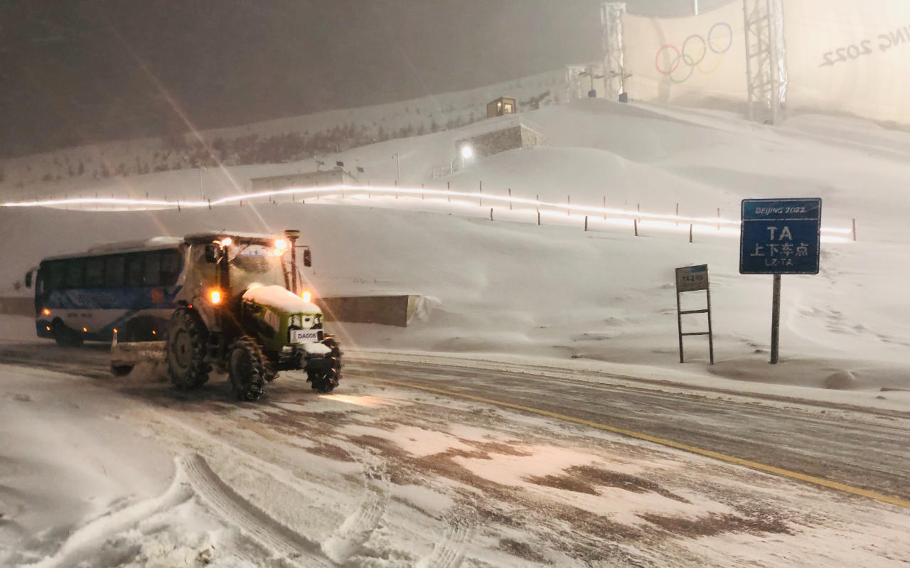 “须晴日,看红装素裹,分外妖娆”。今天,张家口赛区天气放晴。记者坐班车走在去往云顶滑雪公园的路上,看到路面几乎没有积雪,道路畅通。就在昨晚,记者在大雪中乘车从云顶赛区回住处的路途中,还看到一路积雪很厚。为了安全起见,车速放得很慢。可还不到10个小时,道路已恢复如常。