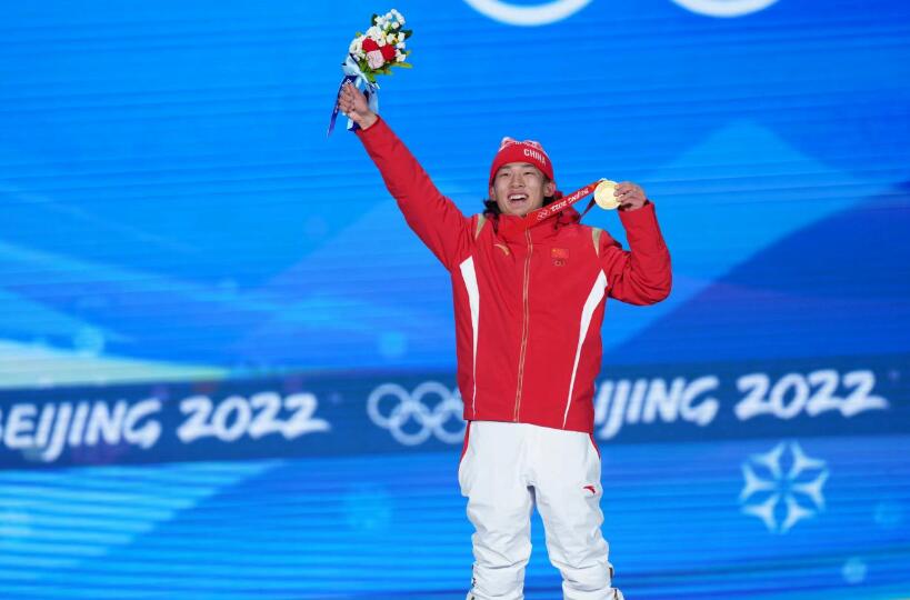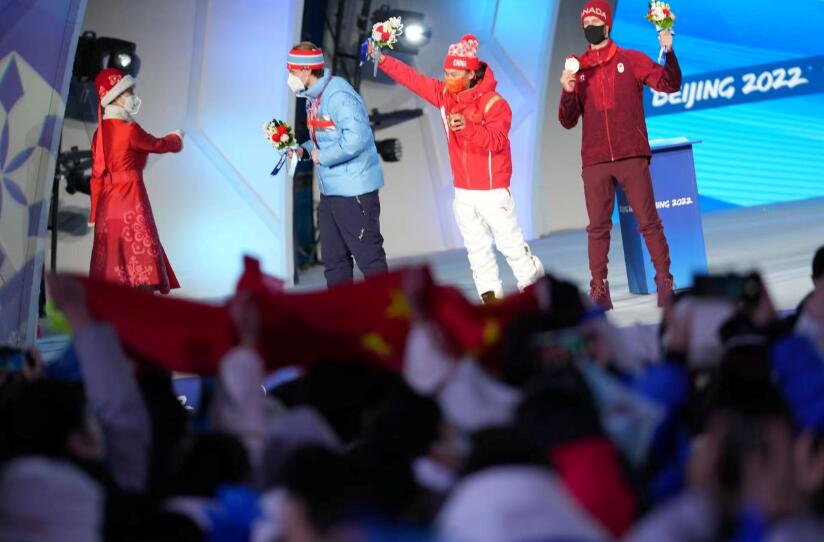 2月15日,北京冬奥会单板滑雪男子大跳台比赛,苏翊鸣夺冠。2月18日是苏翊鸣18岁生日。今天的颁奖仪式上,苏翊鸣收到了最想要的成年礼物。