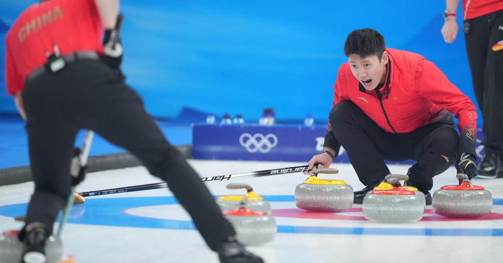 中工网讯 (郑鑫)2月16日,在北京国家游泳中心“冰立方”举行的北京2022年冬奥会男子冰壶循环赛第11轮中,中国男子冰壶队由许静韬、王智宇、邹强、马秀玥组成的中国队发挥出色;最终,以6:5击败瑞士队。