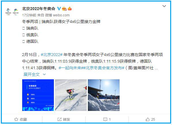 北京2022年冬奥会和冬残奥会组织委员会官方微博截图