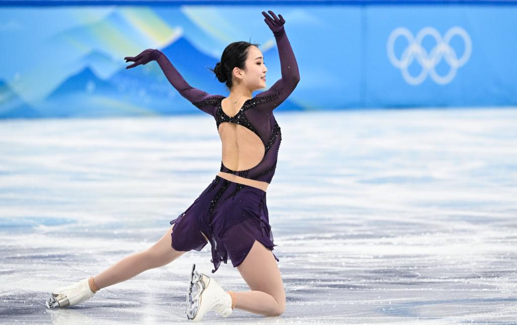 2月15日,中国选手朱易在2022年冬奥会花样滑冰女子单人滑短节目比赛中。新华社记者马宁摄