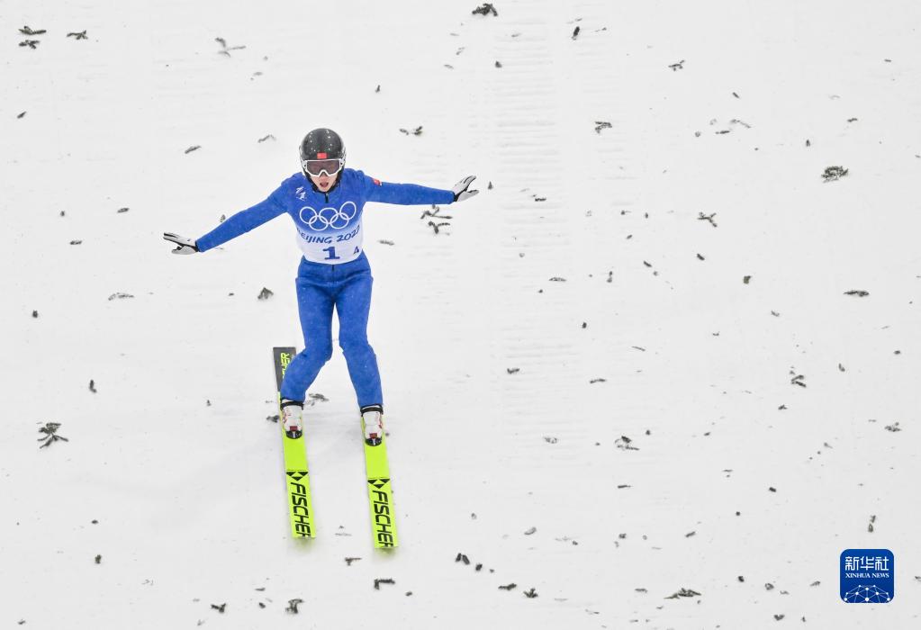 2月17日,中国队选手范海斌在跳台滑雪比赛中。新华社记者 朱峥 摄