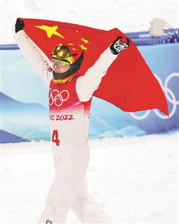 这枚金牌也是16年的等待。空中技巧被誉为“冒险家的游戏”。这个项目的博弈,涉及动作难度、临场应变、心理调节等多方面因素,胜负往往就在一跳之间。