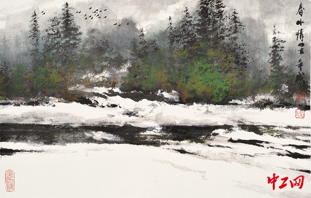 《春水情》(冰雪画,尺寸70cm×44cm),“冰雪情·冬奥梦”全国职工冰雪主题绘画活动特邀牟成先生作品