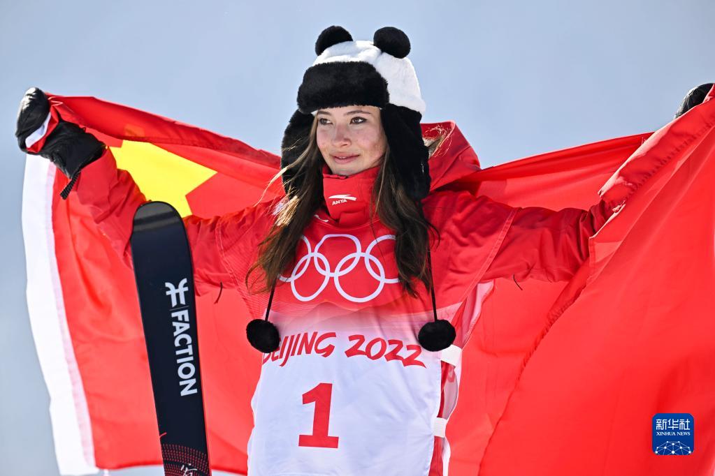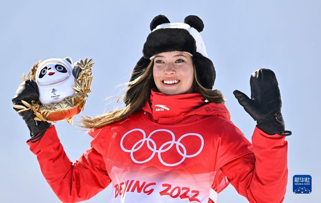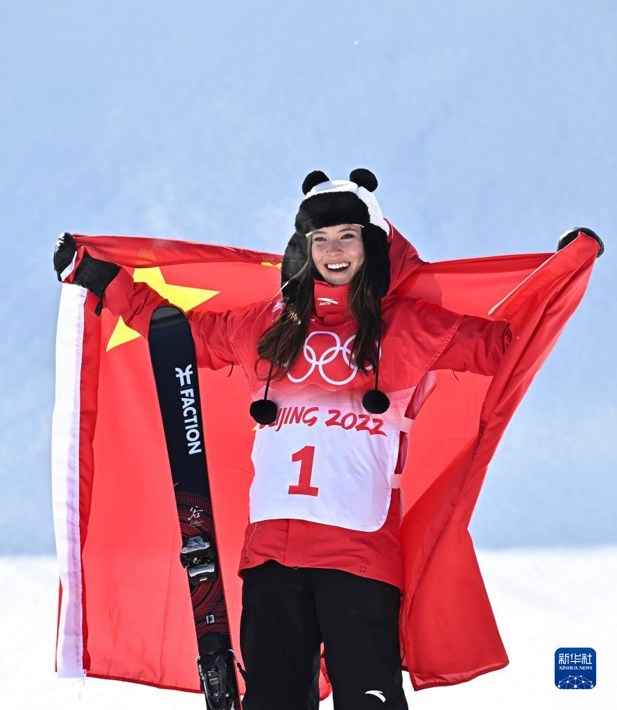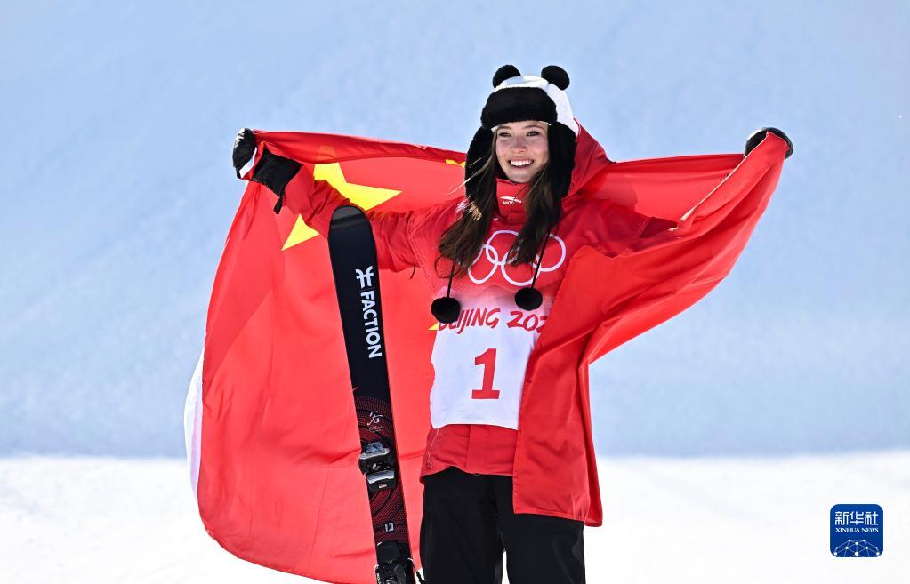 当日,北京2022年冬奥会自由式滑雪女子U型场地技巧决赛在张家口云顶滑雪公园举行。中国队选手谷爱凌夺得此项目金牌。
