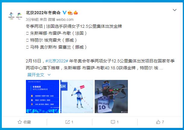 中工网讯 据北京2022年冬奥会和冬残奥会组织委员会官方微博消息,2月18日,北京2022年冬奥会冬季两项女子12.5公里集体出发项目在国家冬季两项中心落下帷幕,朱斯蒂娜·布雷萨-布歇40:18.0获得金牌,特丽尔·埃克霍夫40:33.3获得银牌,马特·奥尔斯布·雷塞兰40:52.9获得铜牌。