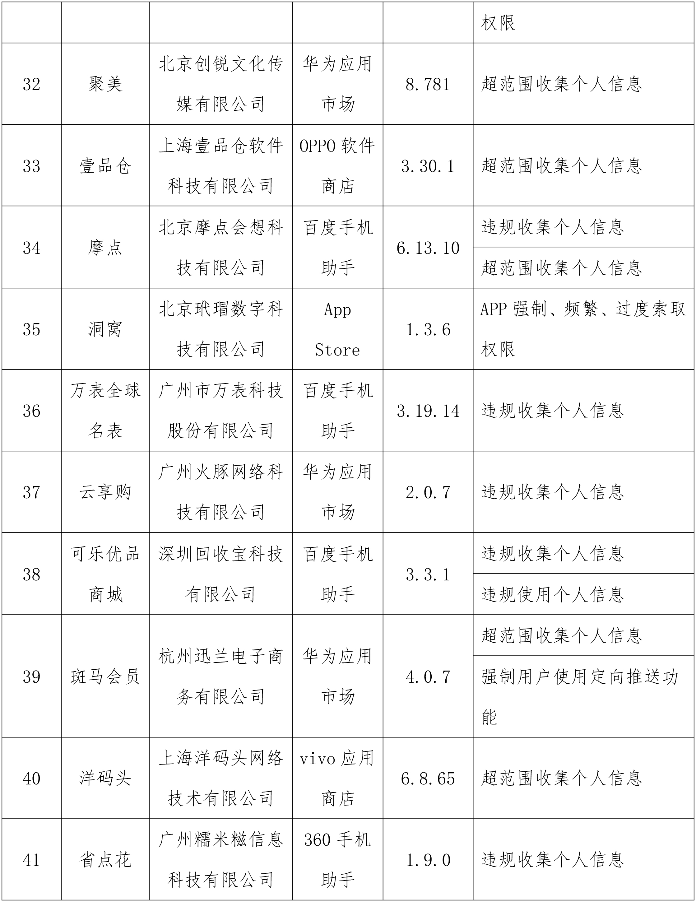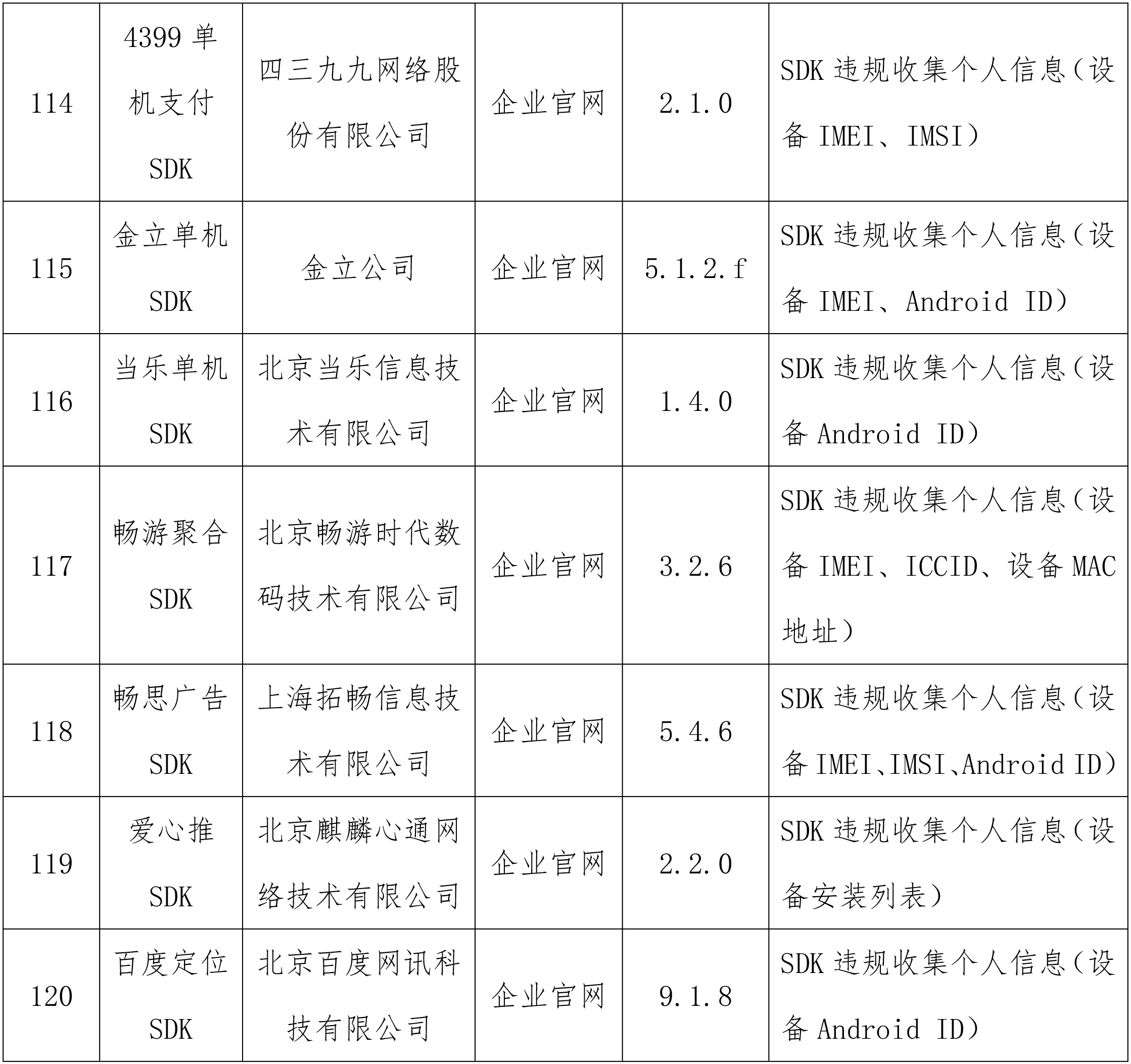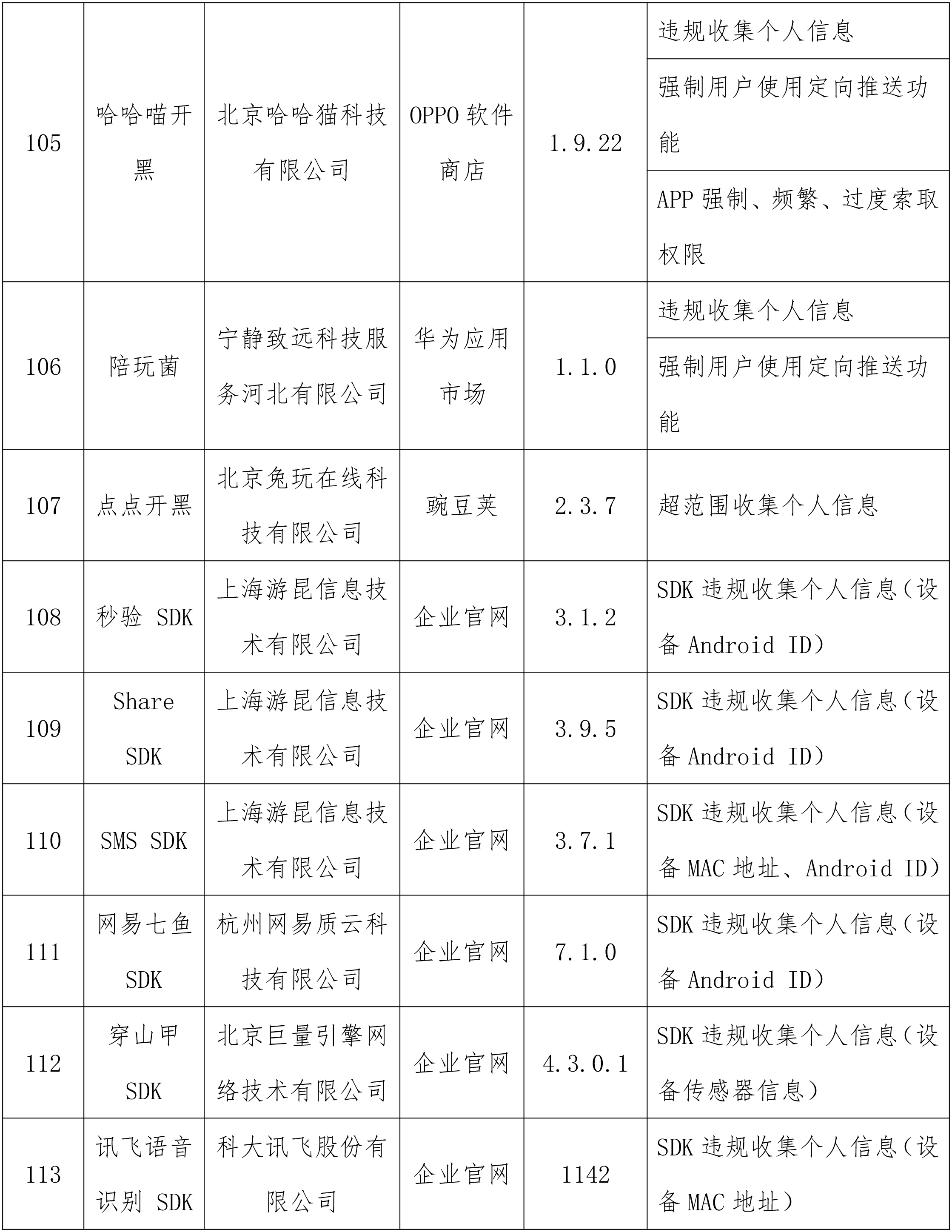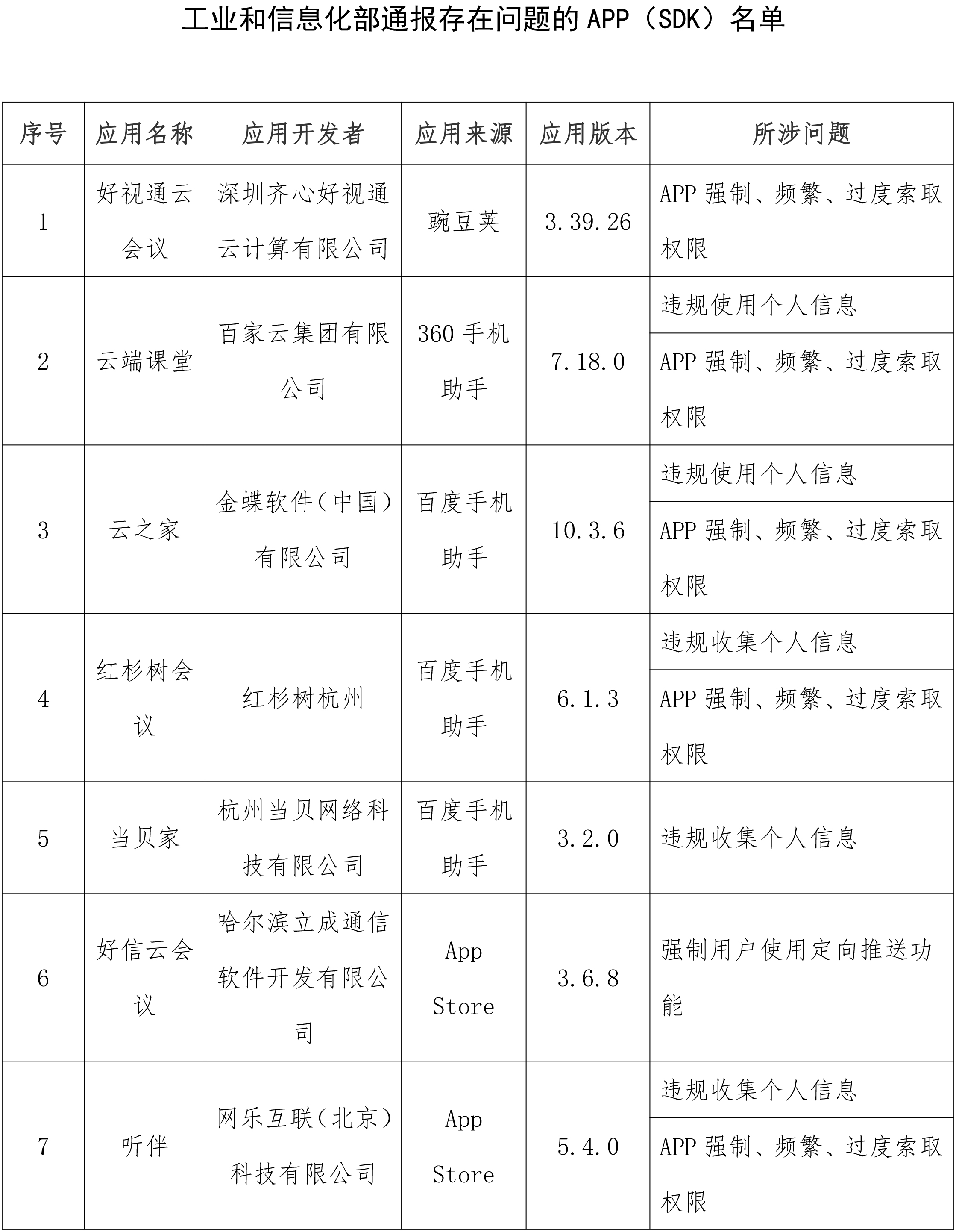 工业和信息化部通报存在问题的APP(SDK)名单
