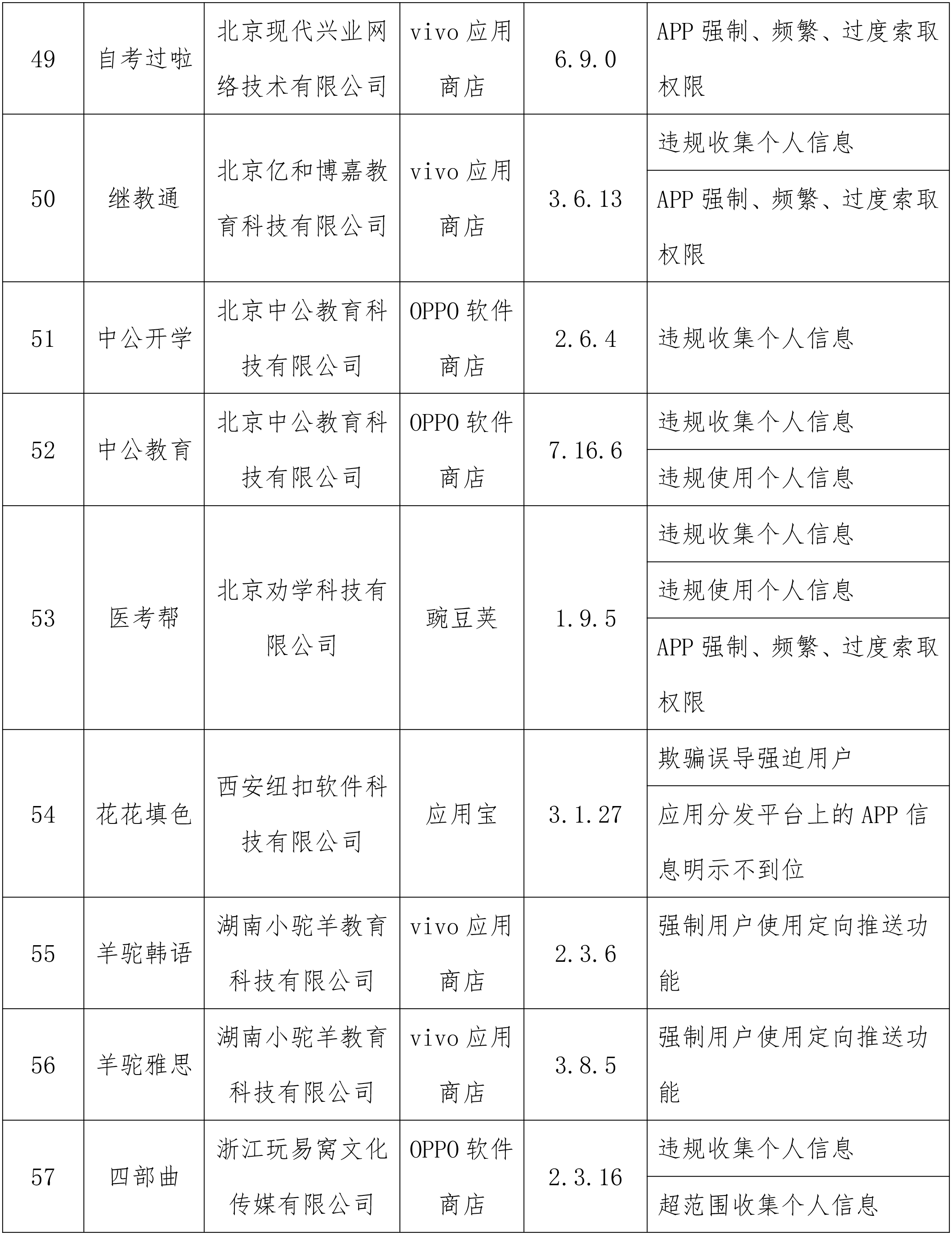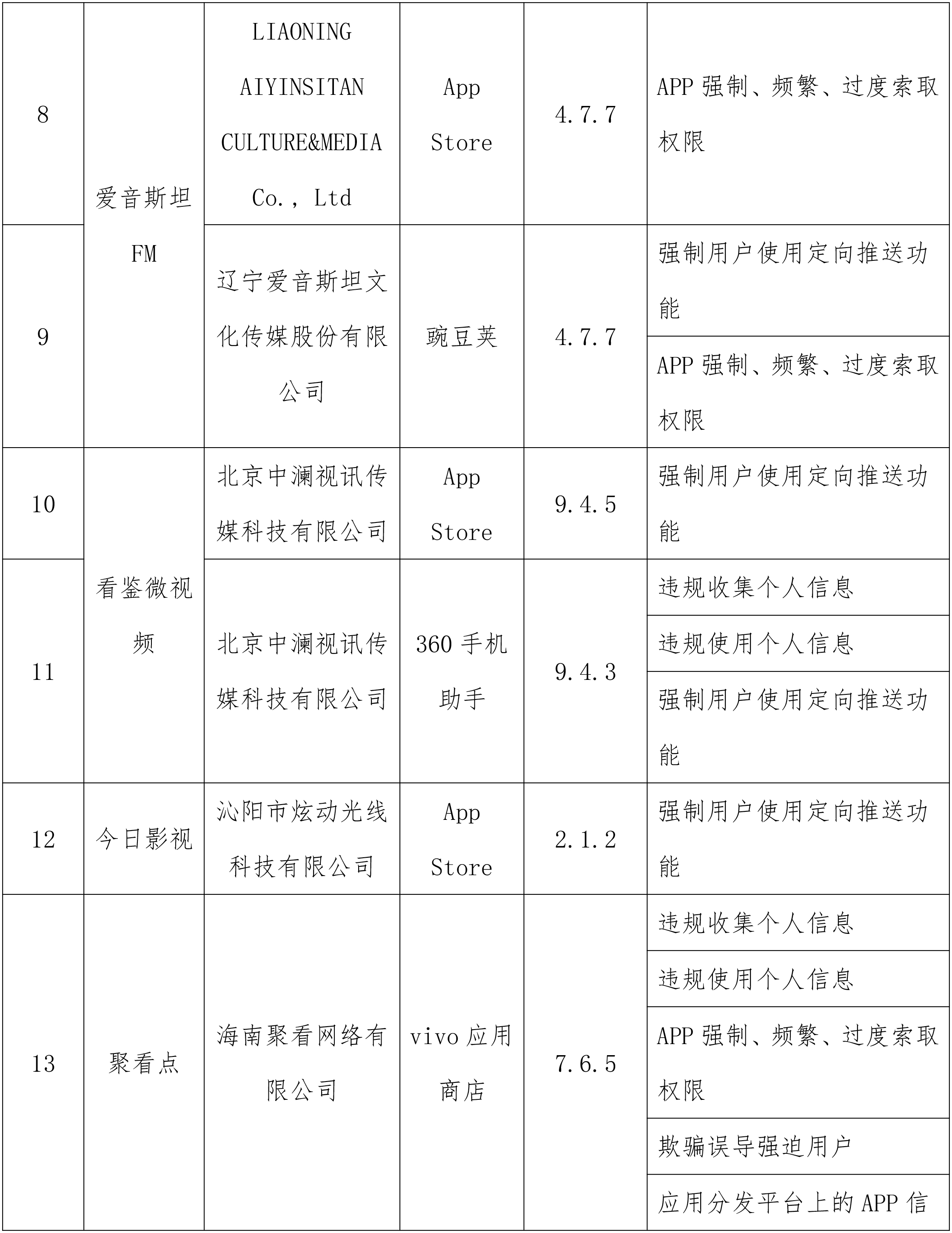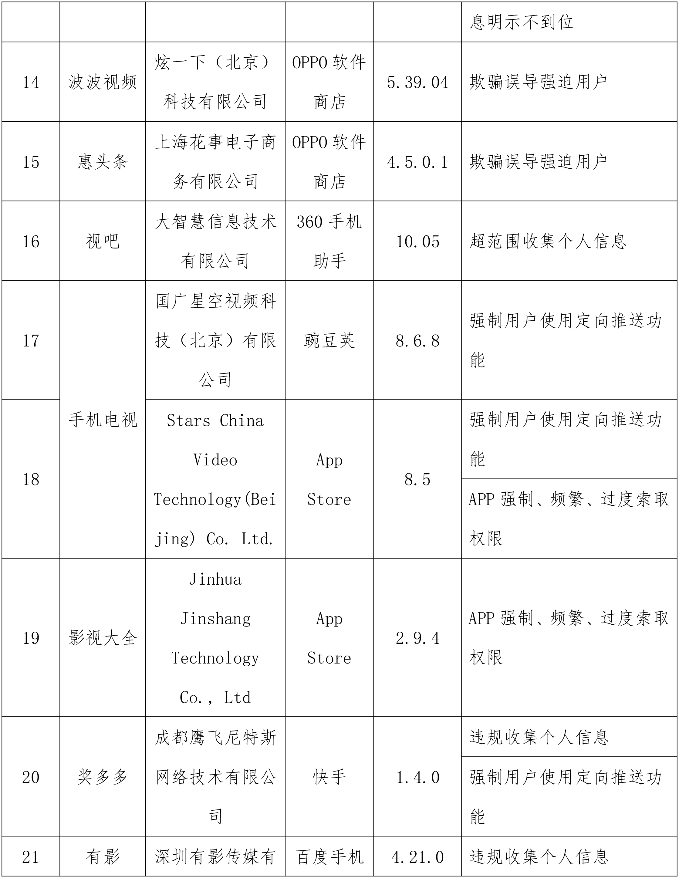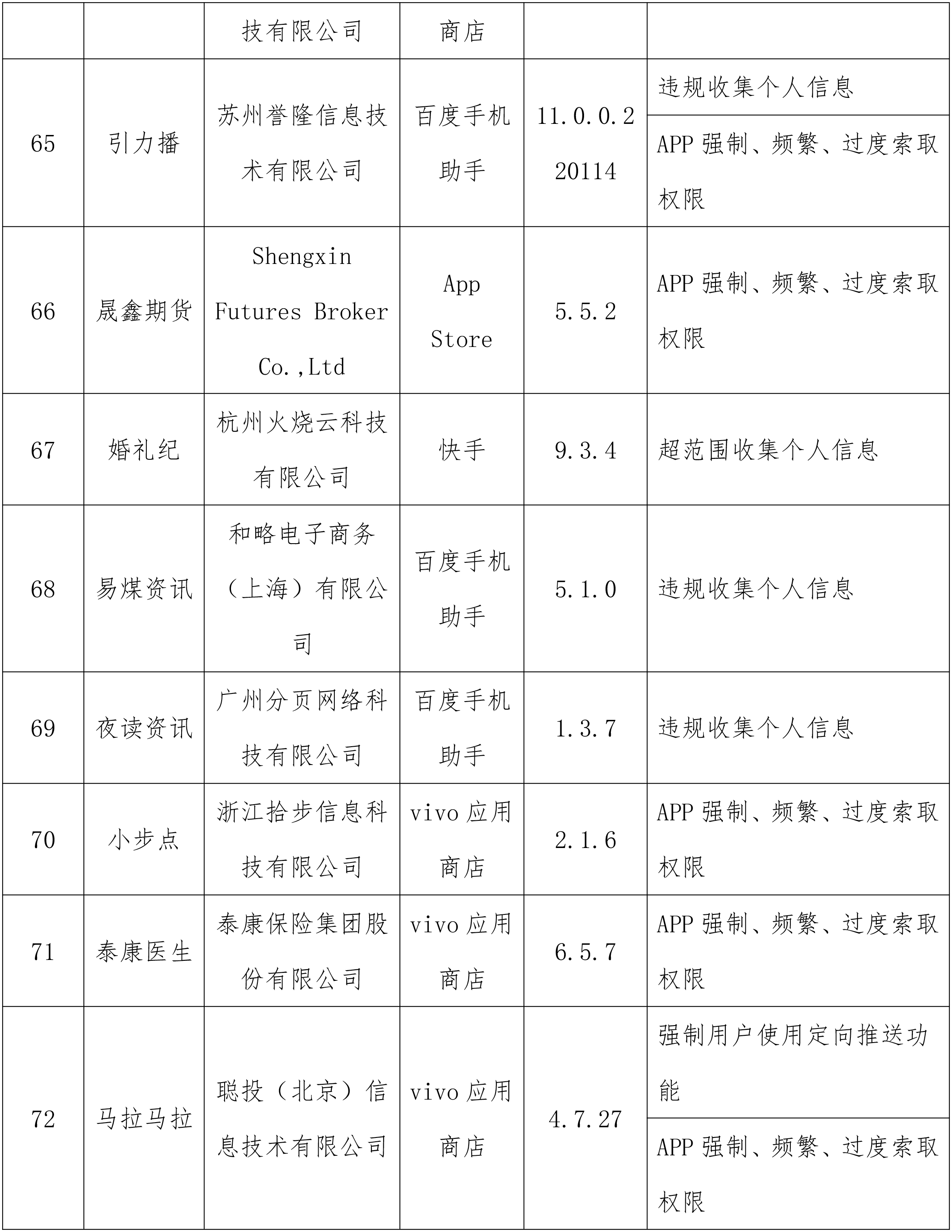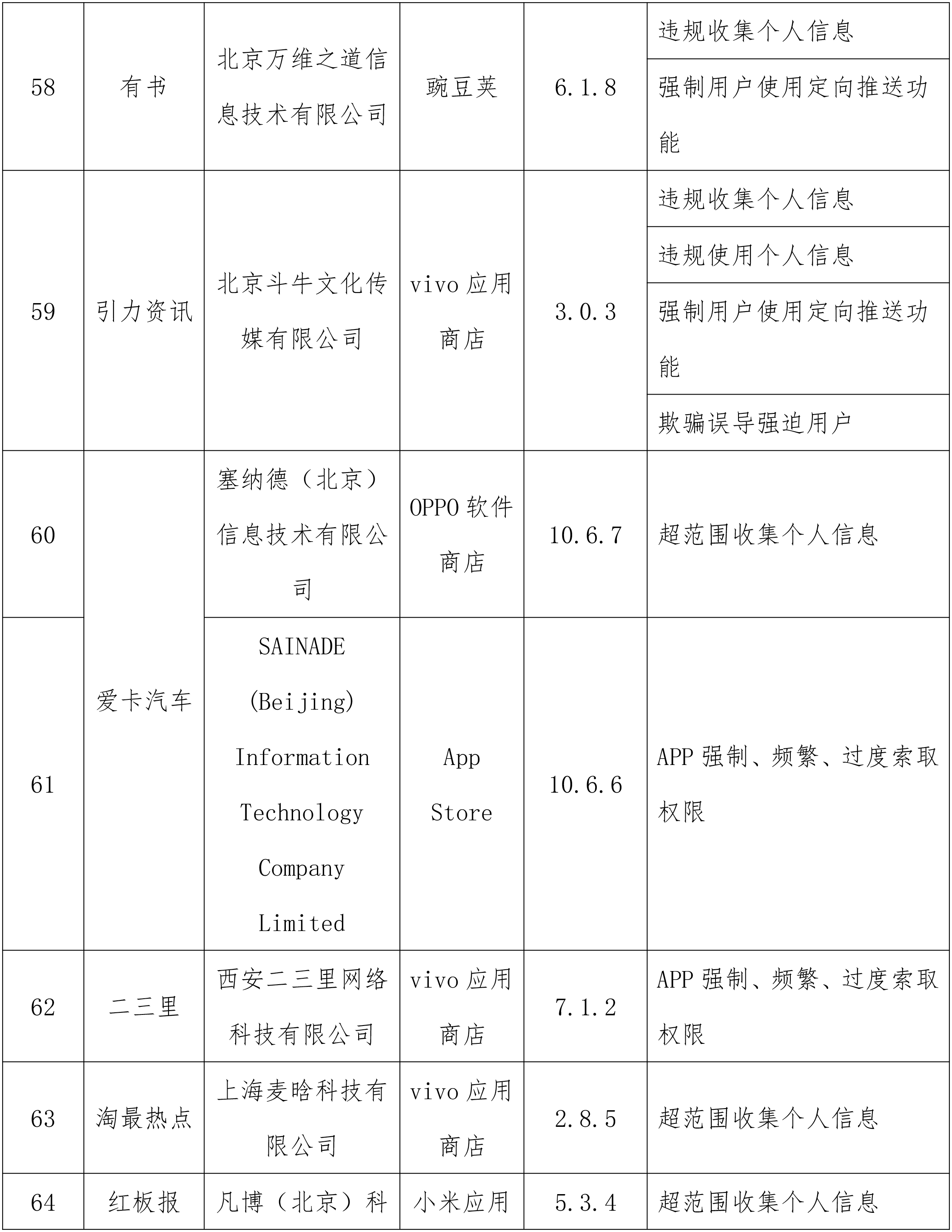 工业和信息化部通报存在问题的APP(SDK)名单