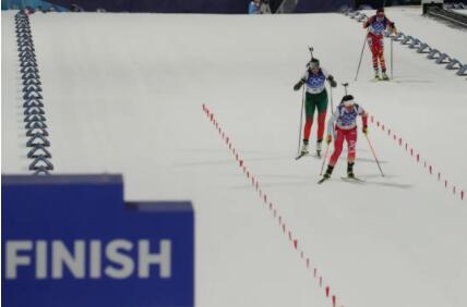 2月11日,张家口赛区,在北京冬奥会冬季两项女子7.5公里短距离比赛中,中国队选手丁雨欢(图上)冲向终点,这也是她的第一次冬奥之旅。