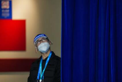 2月7日,张家口赛区,北京冬奥会闭环内的一名工作人员。“北京冬奥会闭环管理非常成功。”日前,国际奥委会主席巴赫点赞北京冬奥会防疫,称“这是一个非常了不起的成果”。
