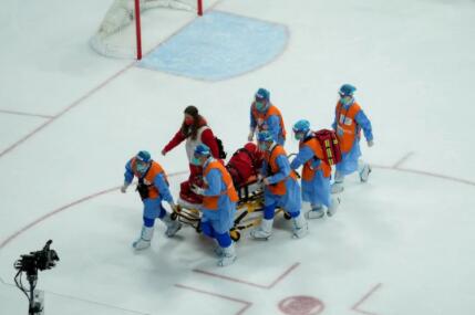 2月6日,五棵松体育中心,北京冬奥会女子冰球B组赛第三轮比赛中,第一局比赛出现突发情况,中国队的张梦莹和队友丽贝卡撞在一起,结果受伤被担架抬出场地接受治疗。