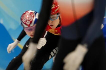 2月9日,首都体育馆,中国队选手韩雨桐在北京冬奥会短道速滑项目女子3000米接力半决赛中。当晚,中国队晋级该项目决赛。