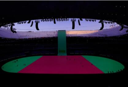 2月4日,国家体育场,工作人员正在调试北京冬奥会开幕式主舞台的LED屏。这块由利亚德和京东方等合作制作的主舞台是目前世界最大的LED三维立体舞台。