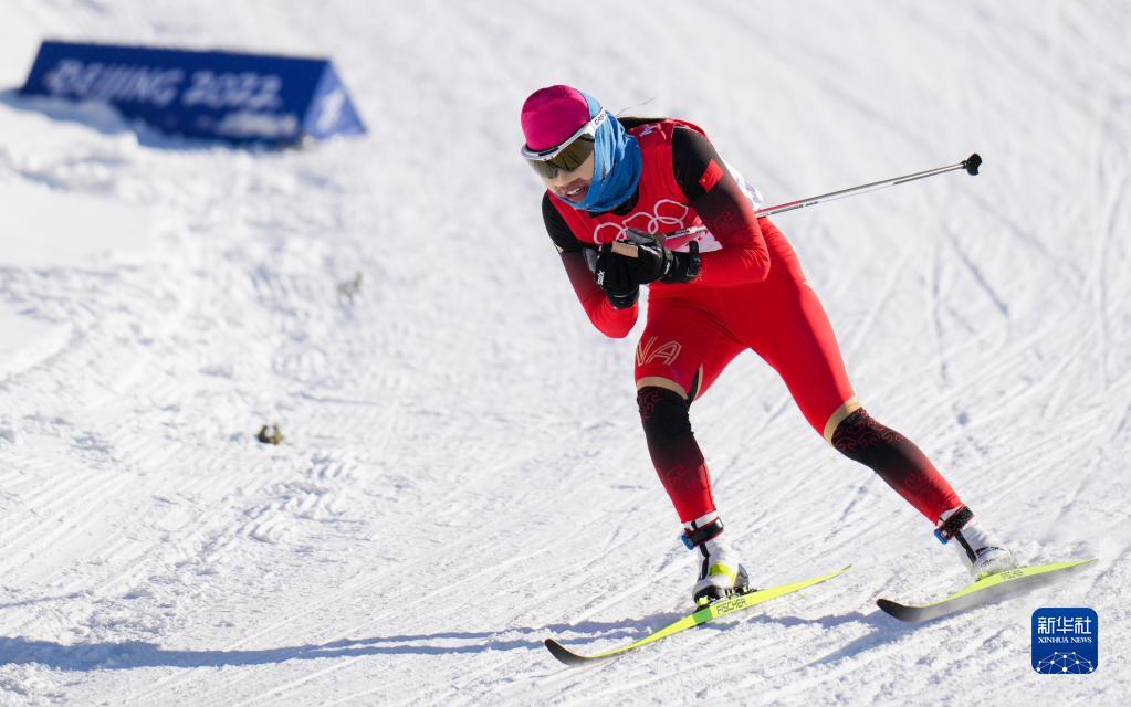 2月16日,中国队选手池春雪在北京冬奥会越野滑雪女子团体短距离(传统技术)比赛中。新华社记者刘潺摄