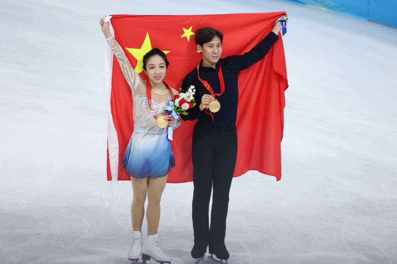 2月19日,在北京冬奥会花样滑冰双人滑自由滑比赛中,中国组合隋文静、韩聪最终以总分239.88的成绩夺得金牌。工人日报—中工网记者 曲欣悦摄
