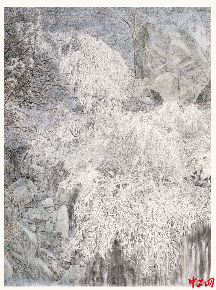 《火树银花》(国画,尺寸180cm×230cm),作者马远婷,“冰雪情·冬奥梦”全国职工冰雪主题绘画活动优秀奖作品