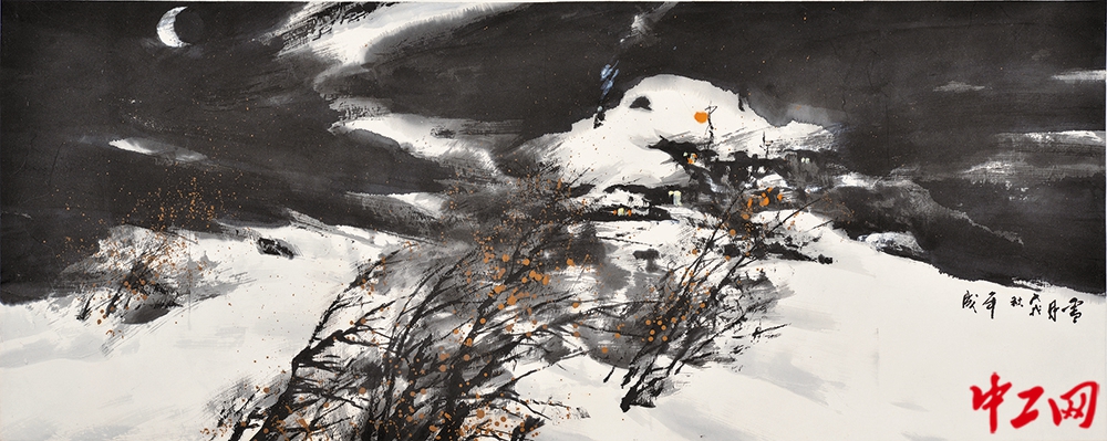 《雪月》(冰雪画,尺寸179cm×71cm),“冰雪情·冬奥梦”全国职工冰雪主题绘画活动特邀牟成先生作品