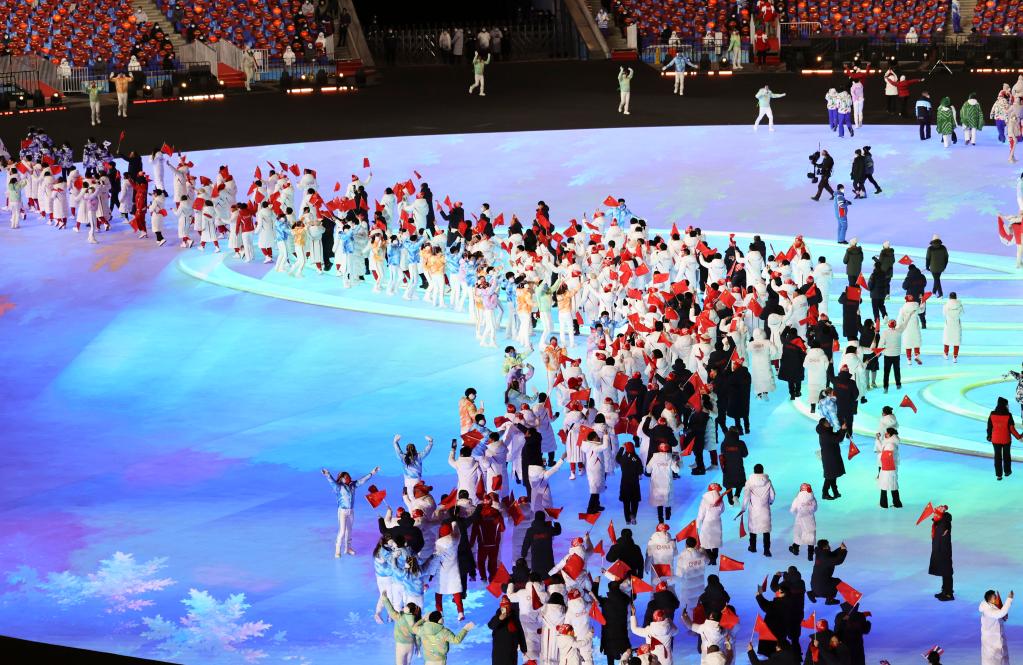 2月20日晚,北京第二十四届冬季奥林匹克运动会闭幕式在国家体育场举行。图为中国代表团成员入场。新华社记者李尕摄