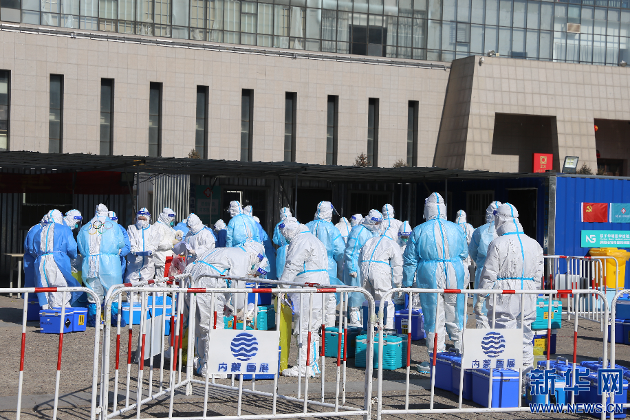 2月15日,新冠肺炎疫情突袭呼和浩特,籍东斌和同事们响应号召成为志愿者,负责核酸检测样本转运工作。新华网 李倩摄