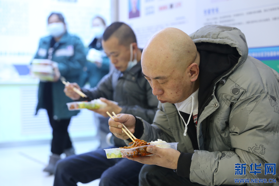 用餐时间也是转运司机们短暂的休整时间。吃过午饭,籍东斌又要马上投入到下一轮紧张的工作中。新华网 李倩摄