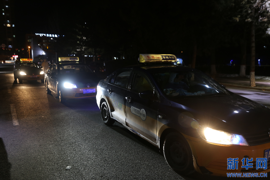 2月20日晚9点,前往指定地点运送样本的出租车排起了长队,完成这一次运送,司机们当天的任务就完成了。新华网 李倩摄