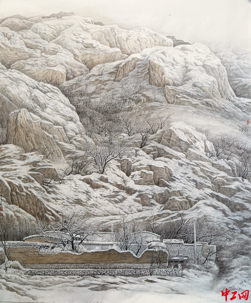 《暖冬》(国画,尺寸175cm×214cm),作者武星旻,“冰雪情·冬奥梦”全国职工冰雪主题绘画活动优秀奖作品
