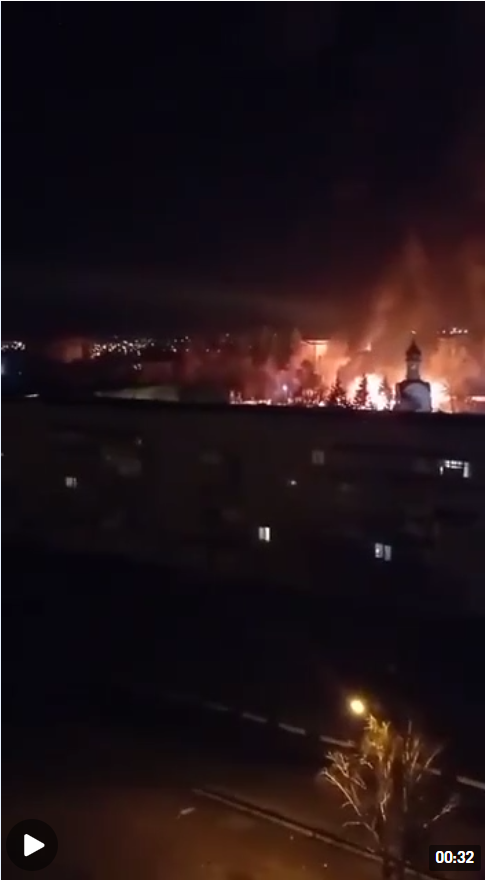 乌克兰东南部一机场附近发生爆炸 火光冲天
