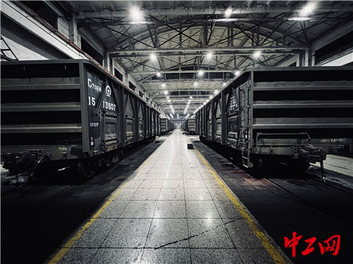 2月24日,在南昌南车辆段向塘修车车间修车库中,检修合格的货车车辆即将投入使用。