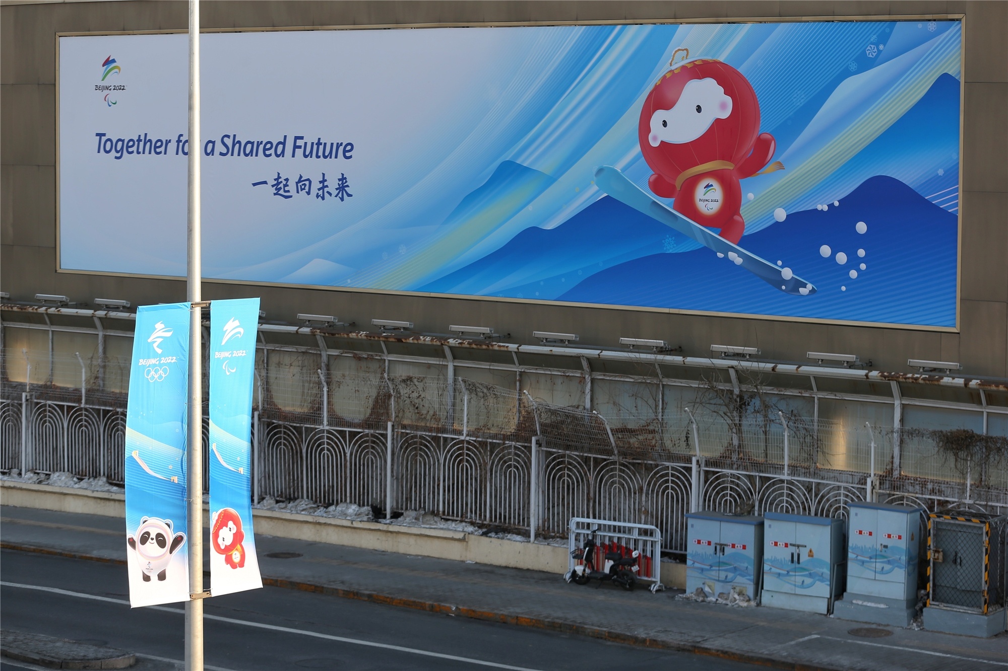 2月24日,北京相关道路景观已更换为冬残奥会标志、吉祥物等。