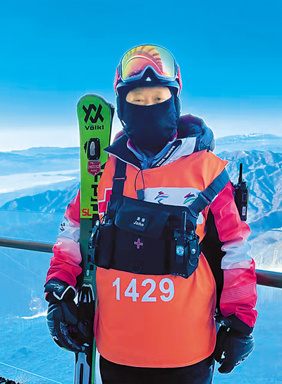1月25日,北京延庆小海陀山顶,袁强在国家高山滑雪中心“雪飞燕”速降起点附近。受访者供图