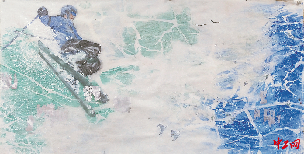 《翱翔》(国画,尺寸240cm×120cm),作者庞建平,“冰雪情·冬奥梦”全国职工冰雪主题绘画活动优秀奖作品