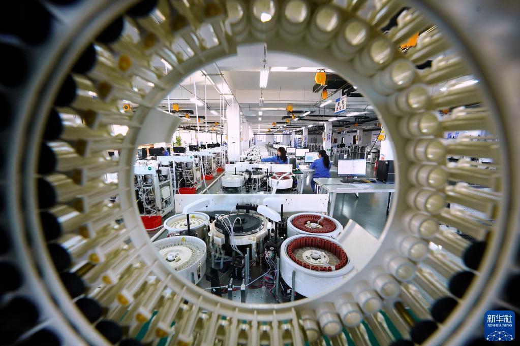 河北省迁安市一家生物科技企业的员工在生产线上工作(2021年12月26日摄)。