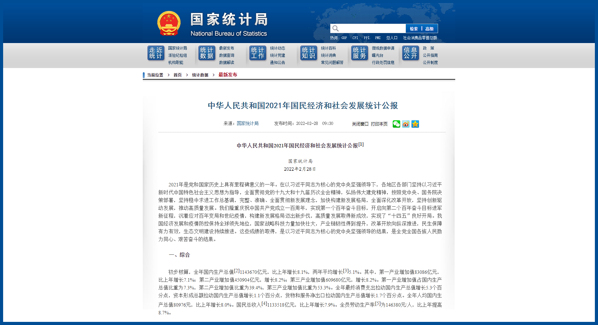 国家统计局网站截图