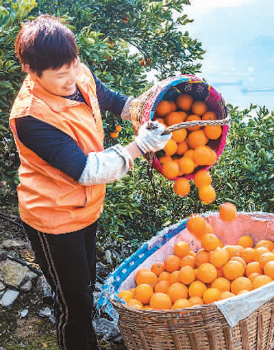 2月26日,湖北省宜昌市秭归县归州镇万古寺村,村民在田间转运红肉脐橙。郑家裕摄(人民视觉)