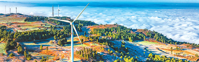 1月18日,云南省曲靖市麒麟区朗目山风景区,风电设备、云海、树林共同构成美丽风景。赵洋洋摄(人民视觉)