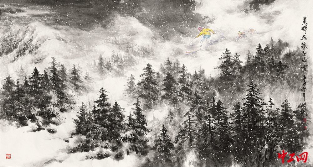 《千里雪》(国画,180cm×96cm),作者吴鹏刚,“冰雪情·冬奥梦”全国职工冰雪主题绘画活动优秀奖作品