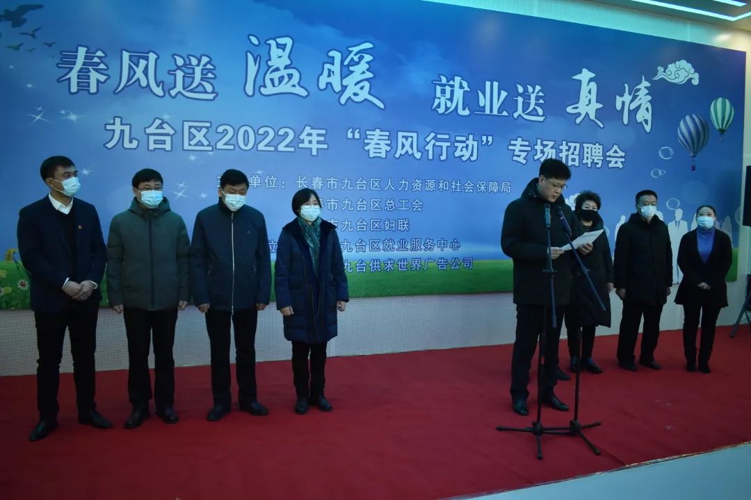 中工网讯 据长春市总工会微信公众号消息,近日,长春市九台区总工会、区人社局、区妇联在民生大厦联合举办以“春风送温暖、就业送真情”为主题的九台区2022年“春风行动”专场招聘会。活动开幕式由区委常委、常务副区长张运广致辞,区人社局局长张新天主持,区总工会、妇联、就业服务中心领导出席开幕式并进行现场指导。