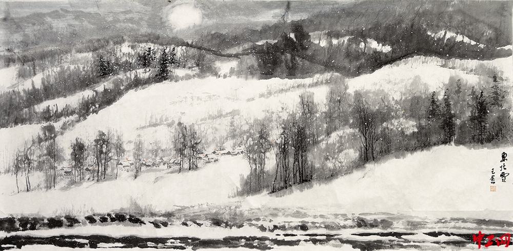 《东北雪》(国画,136cm×68cm),作者刘玉金,“冰雪情·冬奥梦”全国职工冰雪主题绘画活动优秀奖作品