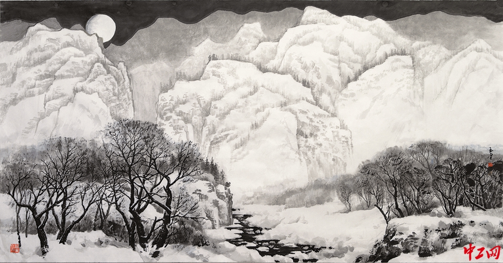 《无题 1》(国画,180cm×95cm),作者刘玉金,“冰雪情·冬奥梦”全国职工冰雪主题绘画活动优秀奖作品