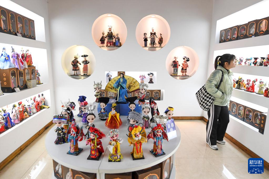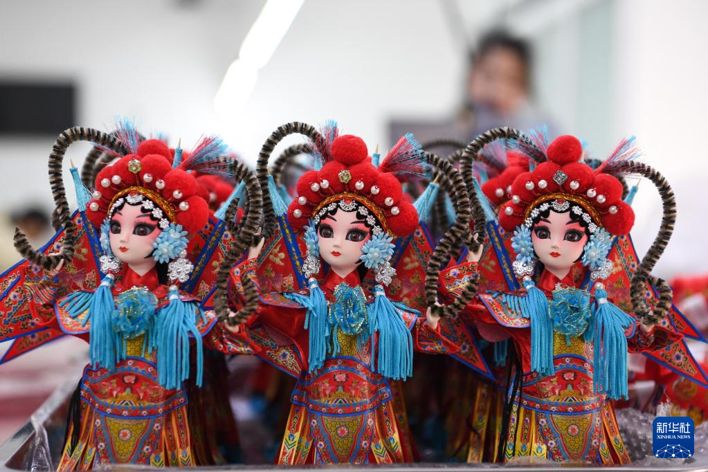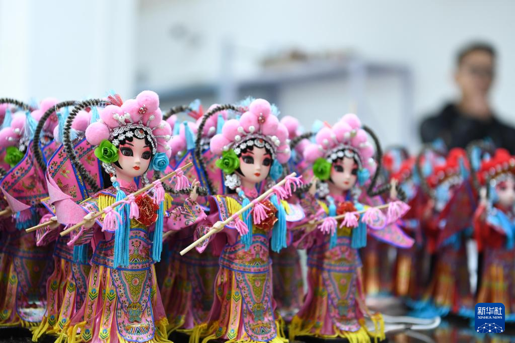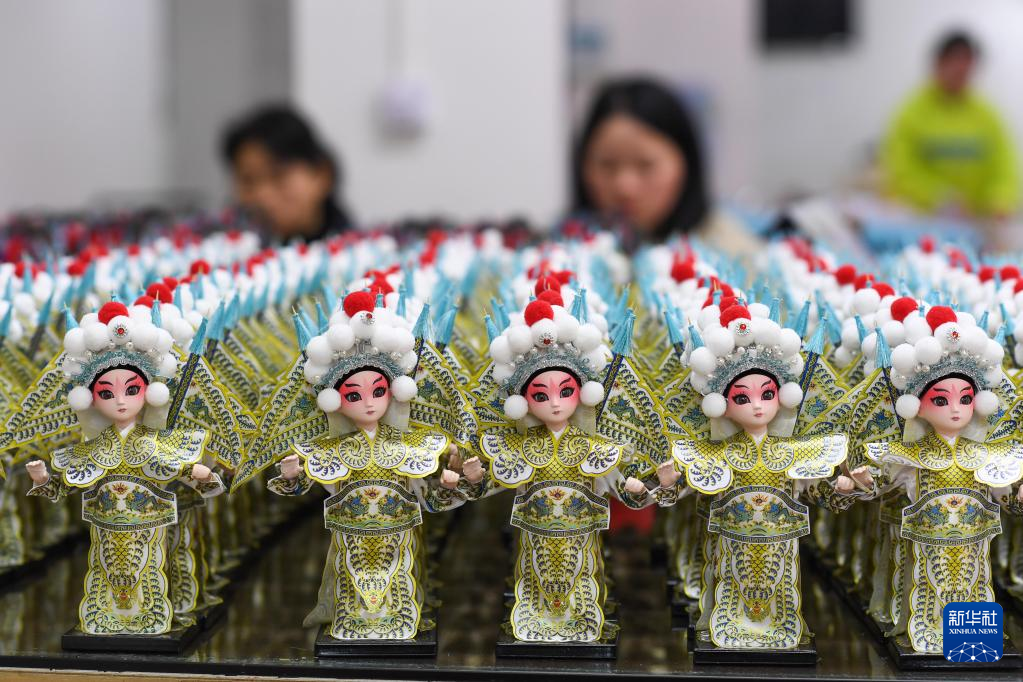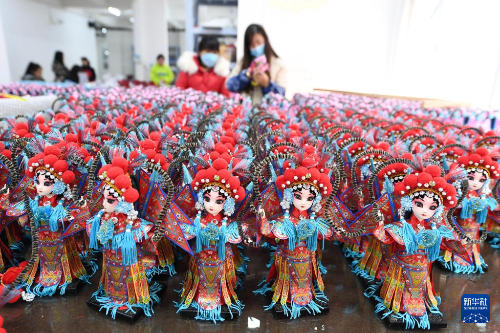 在惠水县幸福移民社区唐人坊产教融合基地拍摄的组装完毕的“唐娃娃”(3月1日摄)。